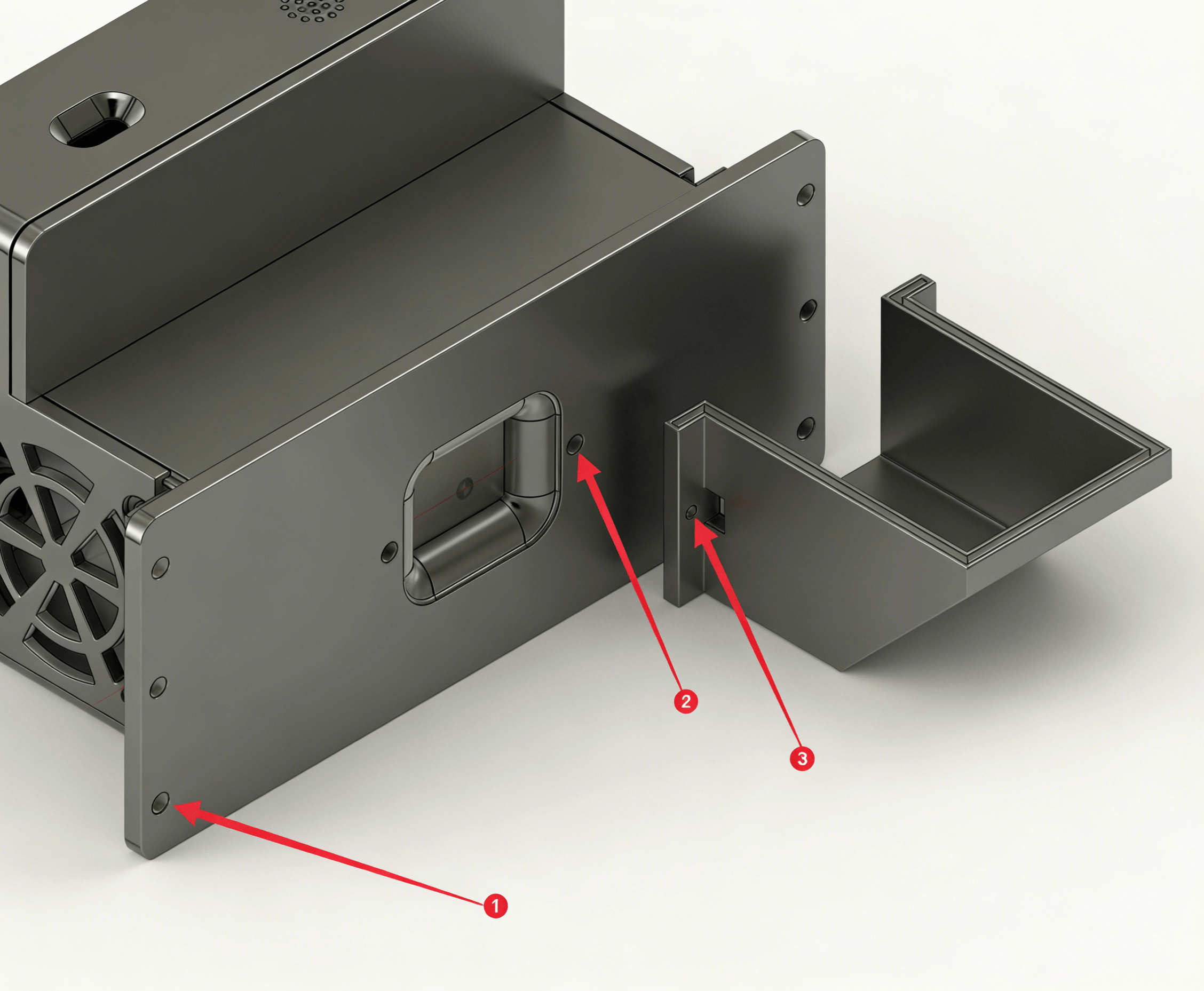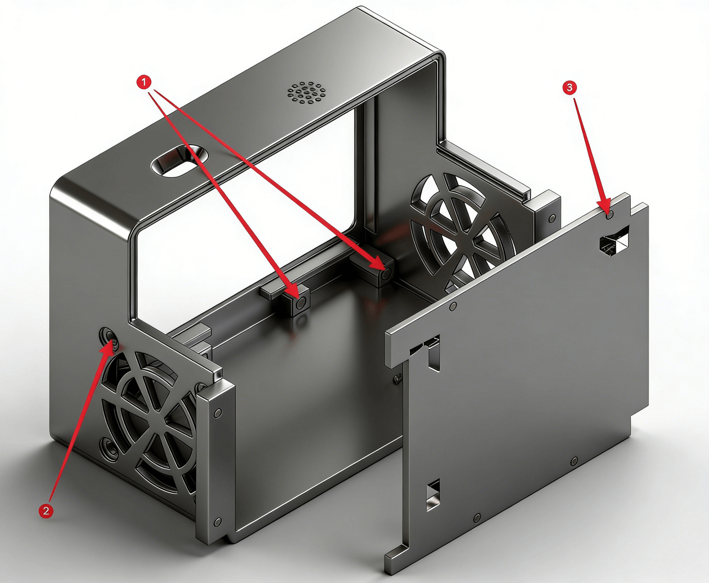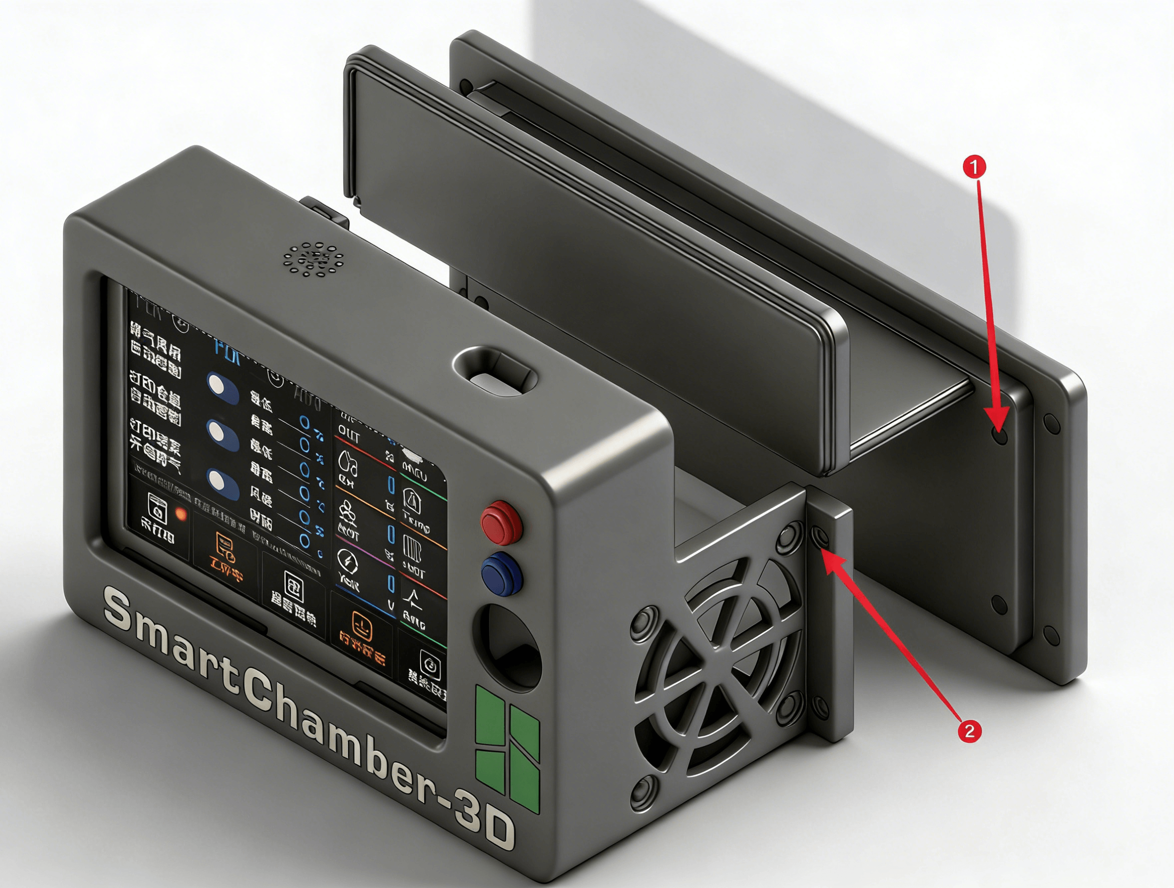 - Install the 4010 fan. Airflow direction: fan front facing outward, rear facing inward (blowing inward).