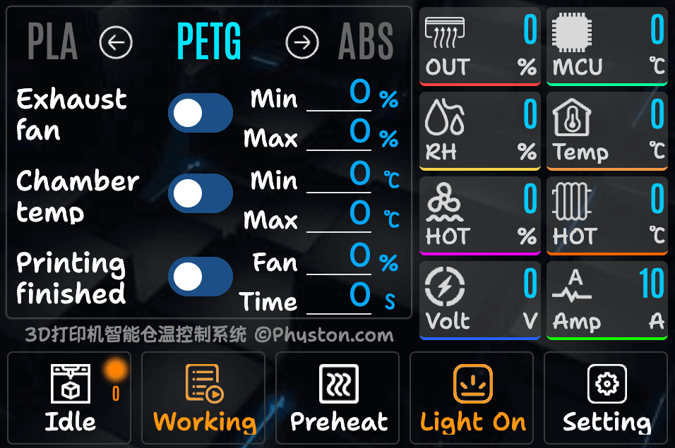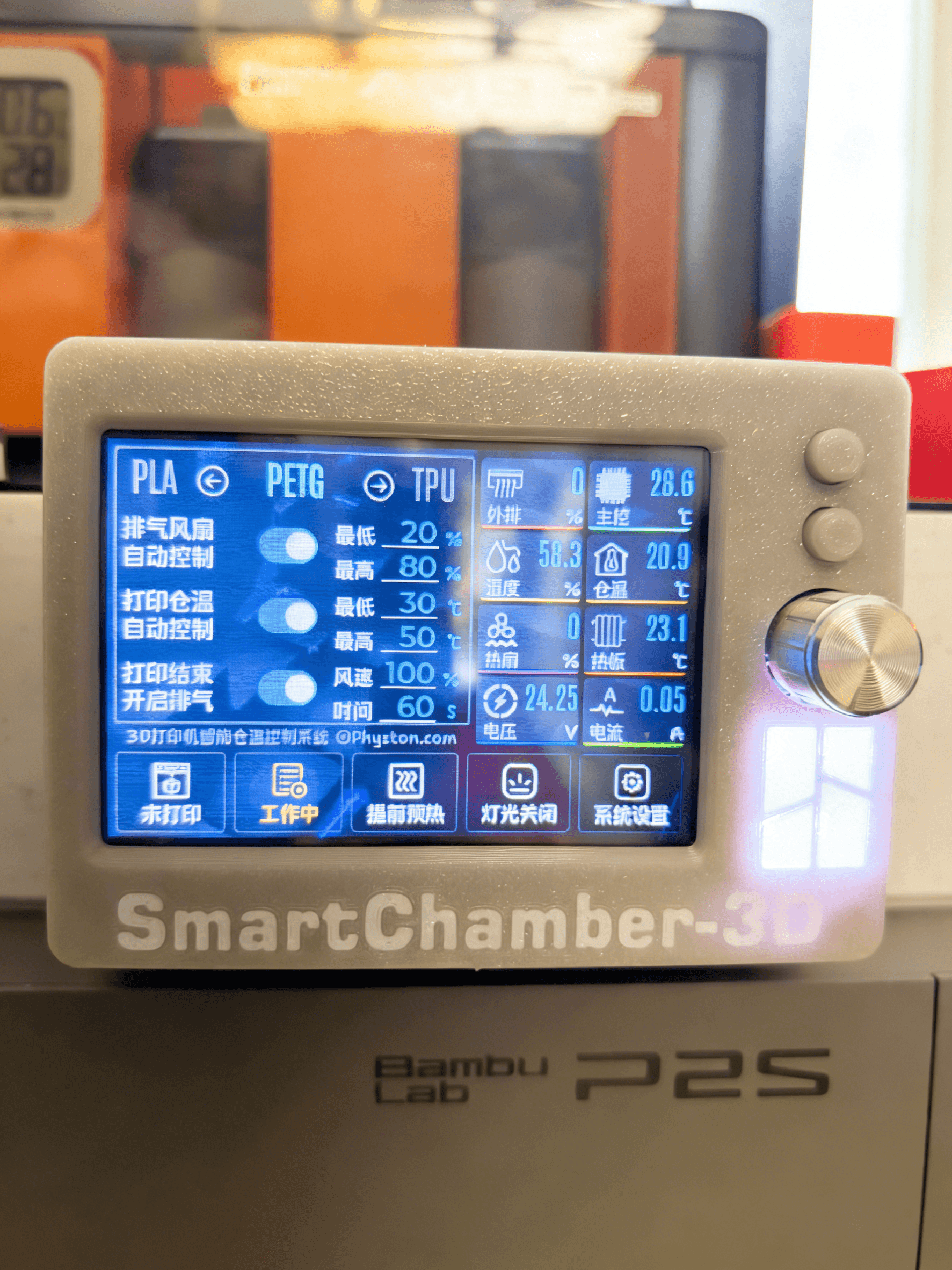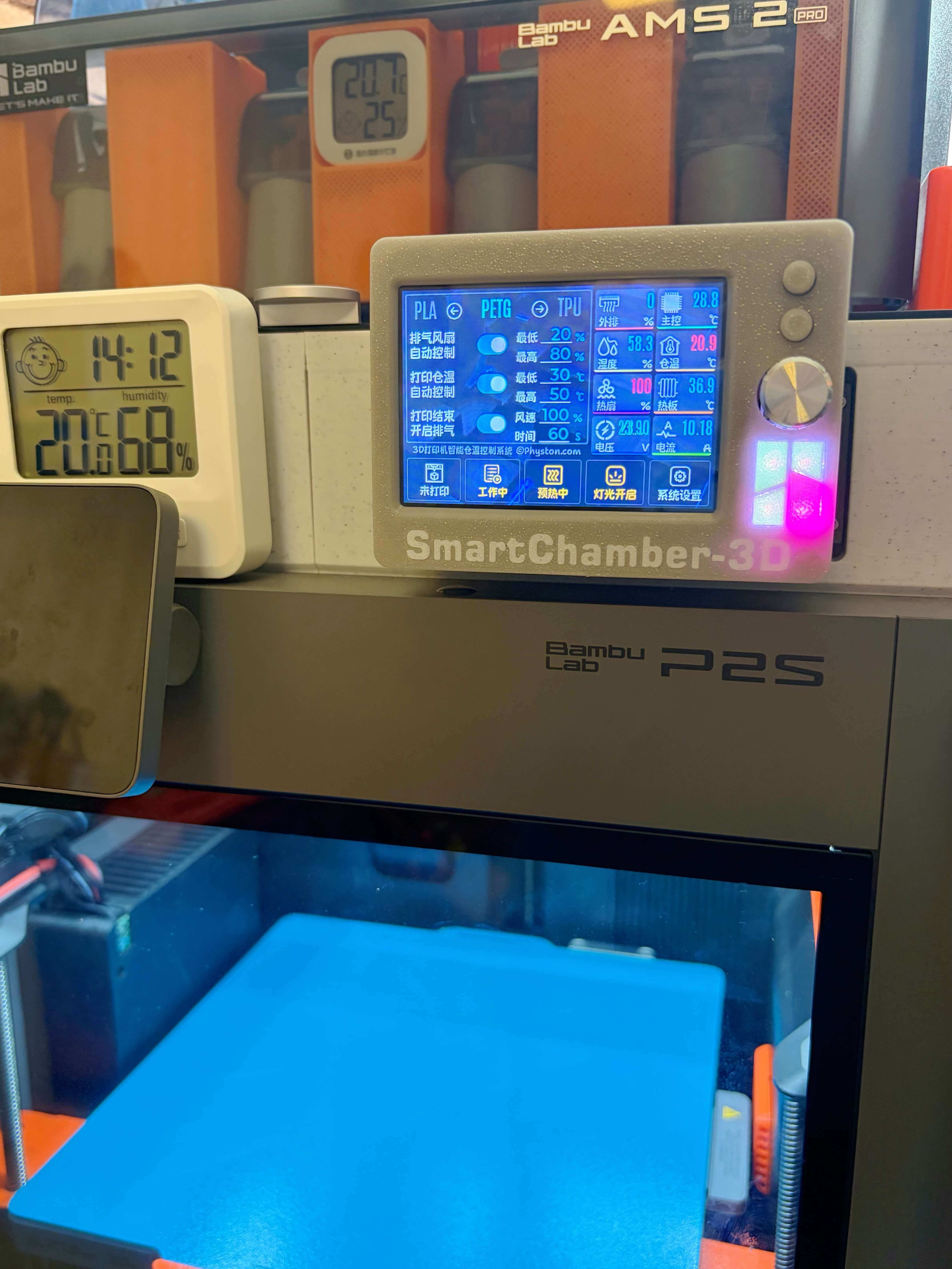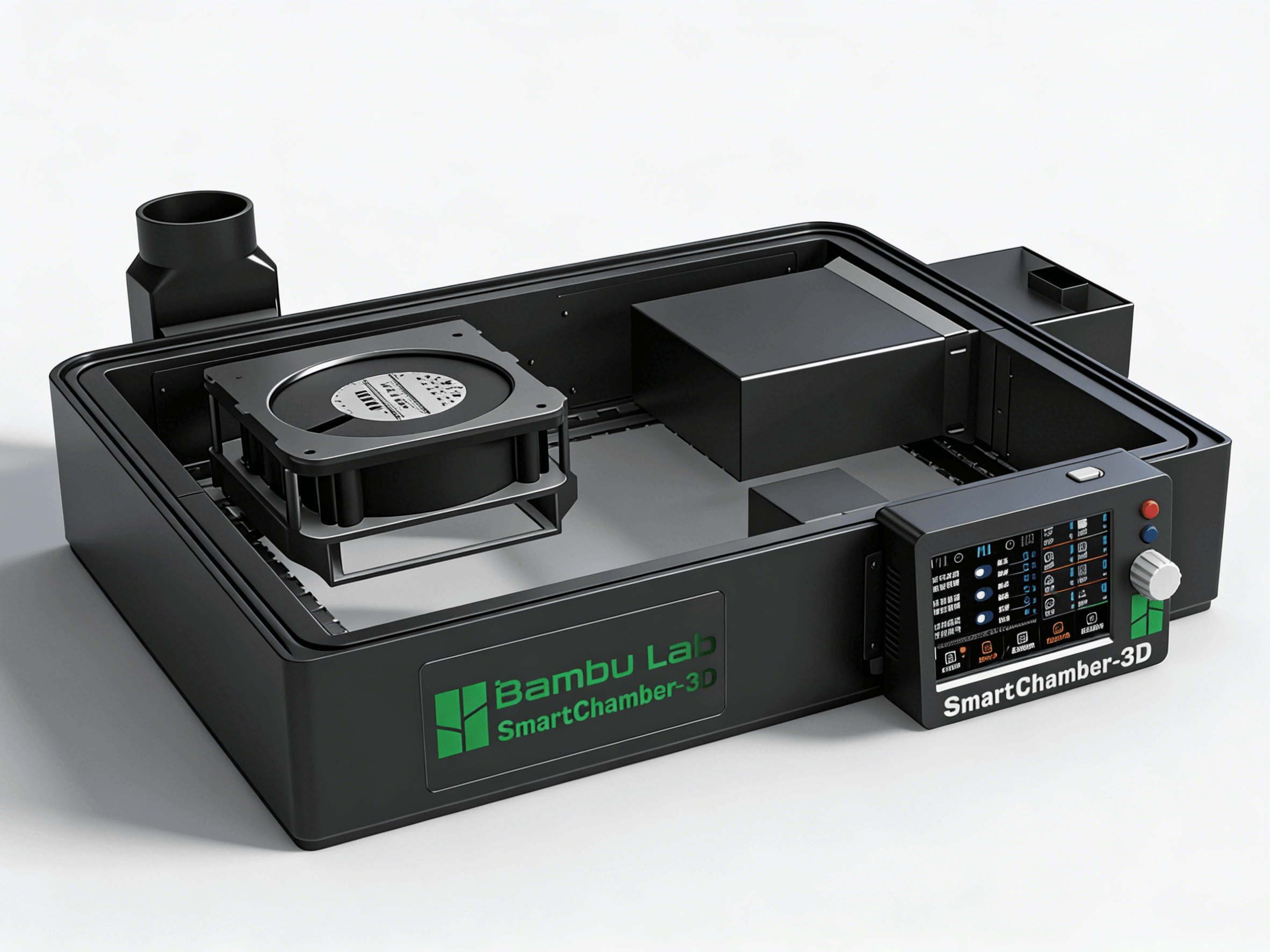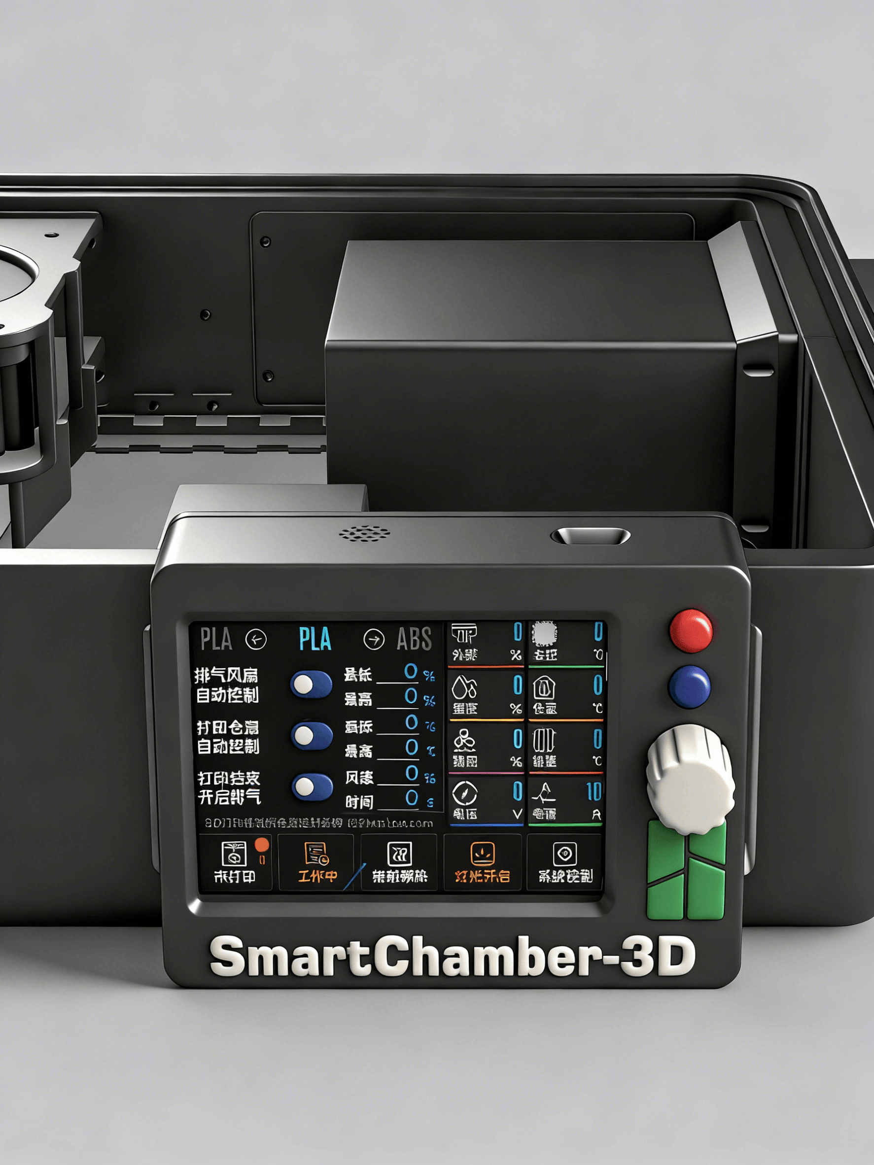 SmartChamber-3D is an intelligent chamber temperature control system for enclosed 3D printers. It provides chamber heating, hazardous gas exhaust, and automatic print-status detection to make printing more stable and hands-off.