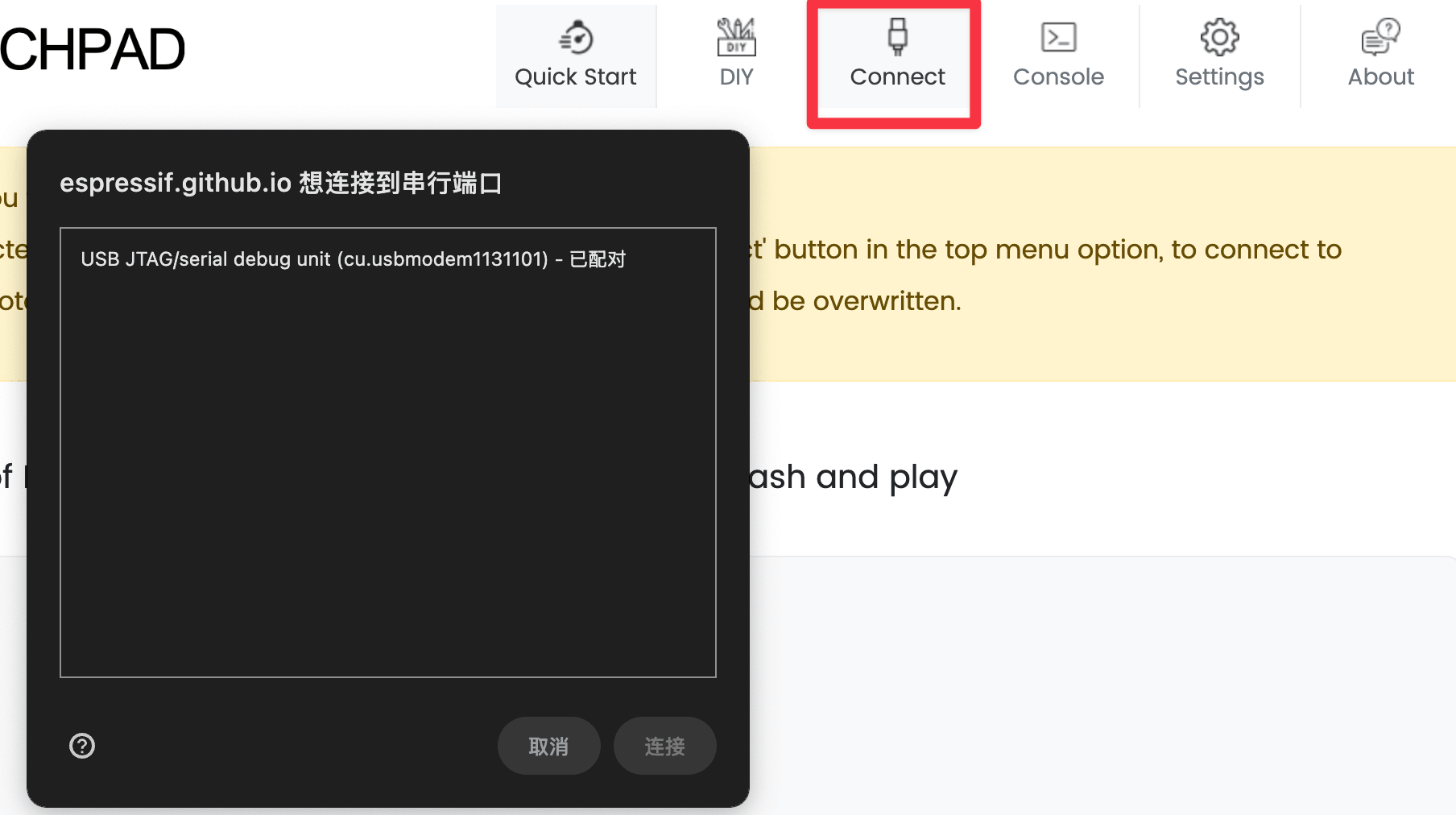 Open the web page: https://espressif.github.io/esp-launchpad/